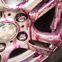 アルミホイールの洗浄やボディー等の鉄粉除去に使います。紫色に変色するタイプ。切削シルバー、メッキホイールにも使えます。 ボディーの鉄粉落としにも使いますがトラップ粘土と併用しないと100%ブツは落とせません。