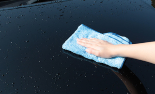 洗車後の濡れたボディにタッチコートを含ませたタオルで水を拭き取るだけで施工が簡単にできます。